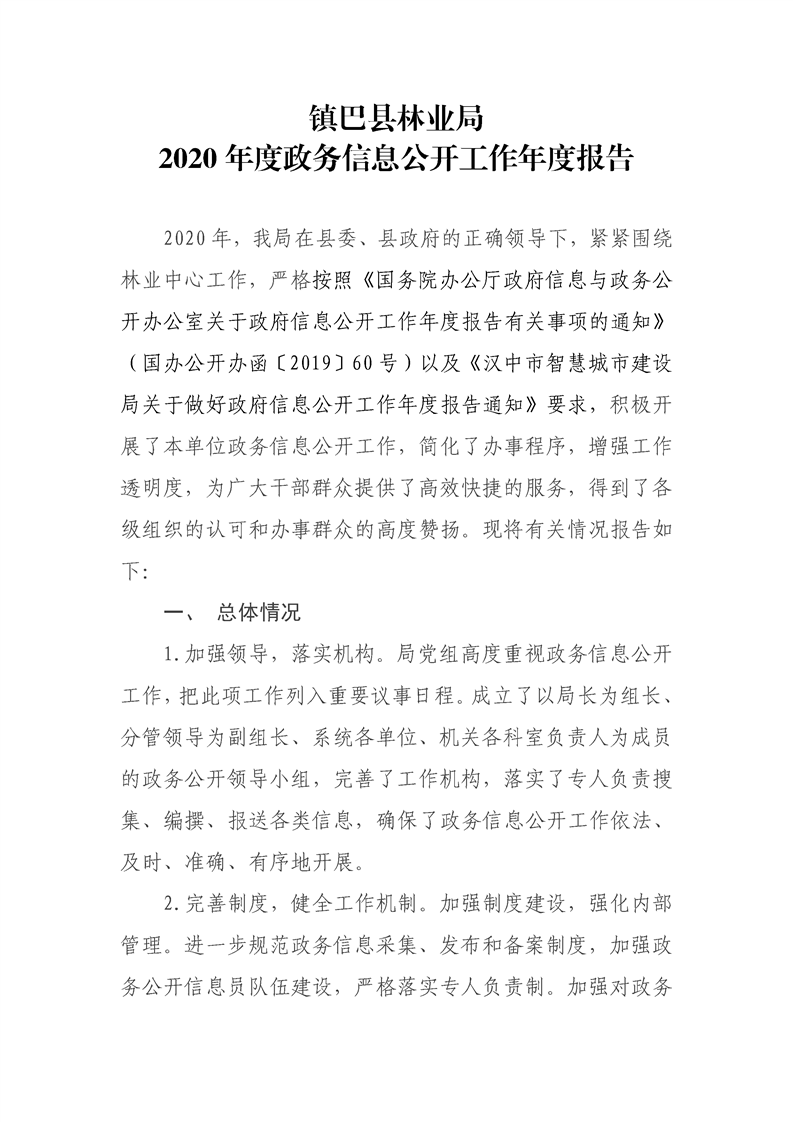 林业局2020年度信息公开工作年度报告