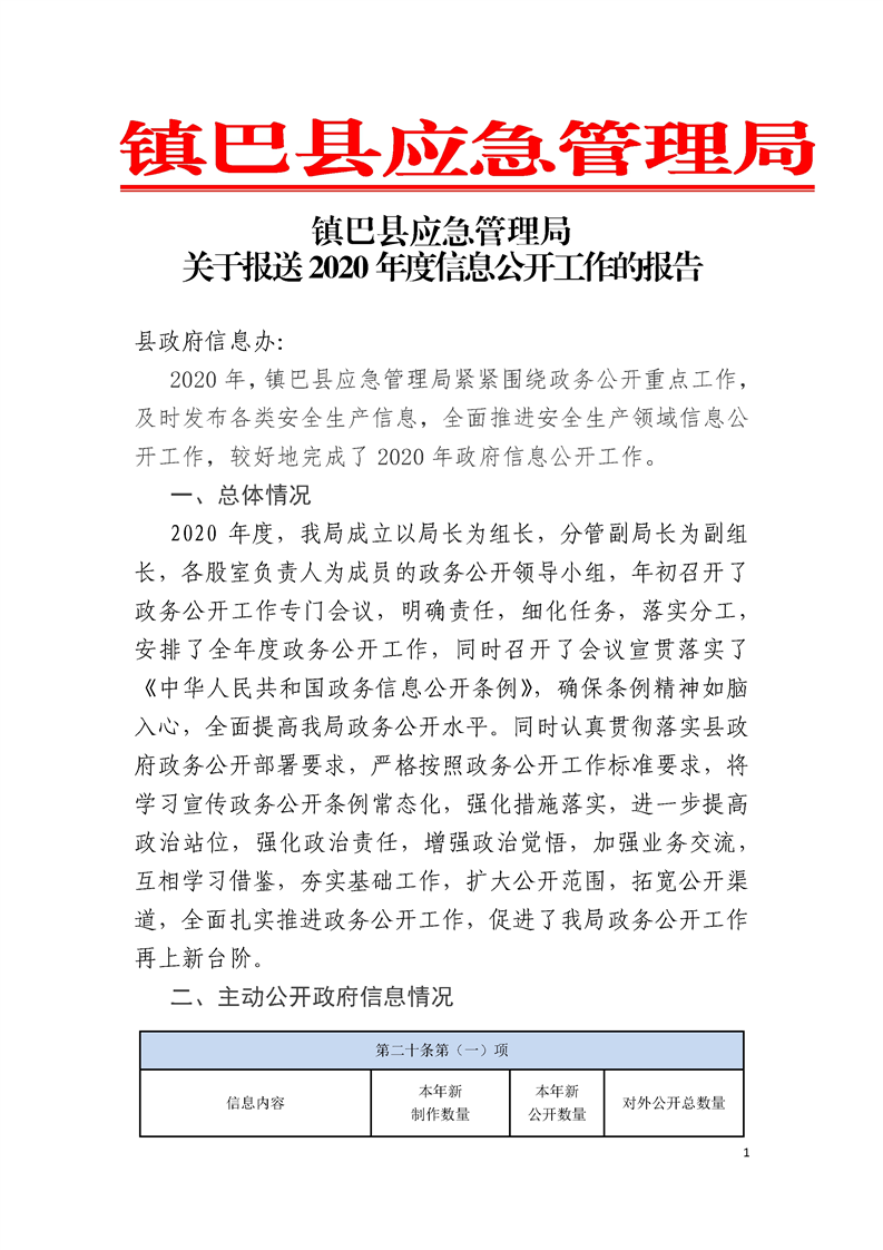 hth手机app下载应急管理局关于报送2020年度信息公开工作的报告