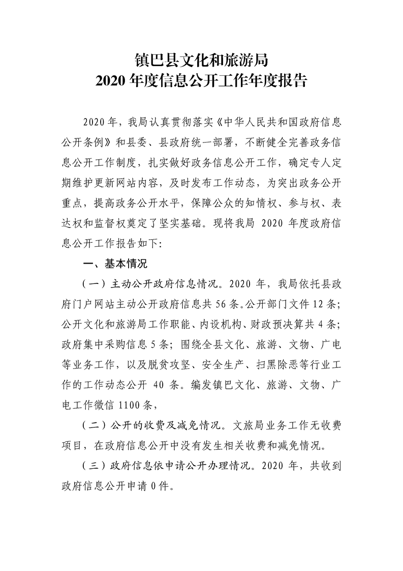 hth手机app下载文化和旅游局2020年度hth华体会体育全站app下载工作年度报告