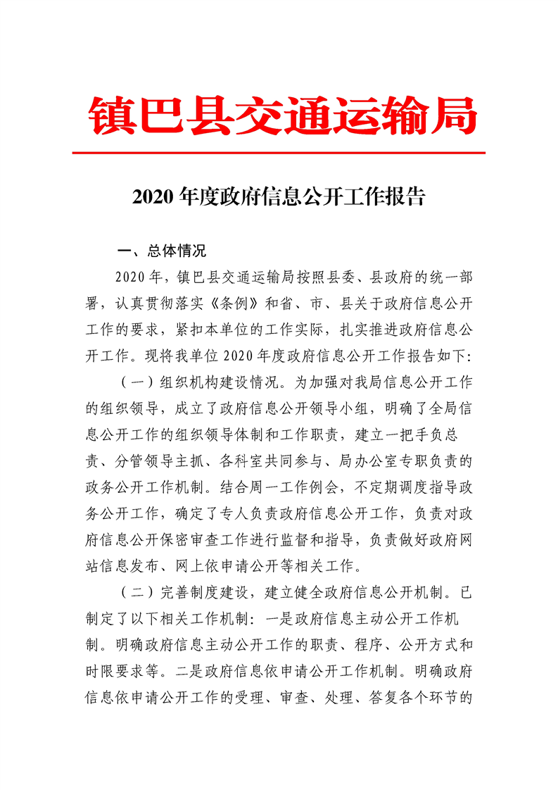 hth手机app下载交通运输局2020年度hth华体会体育全站app下载工作年度报告