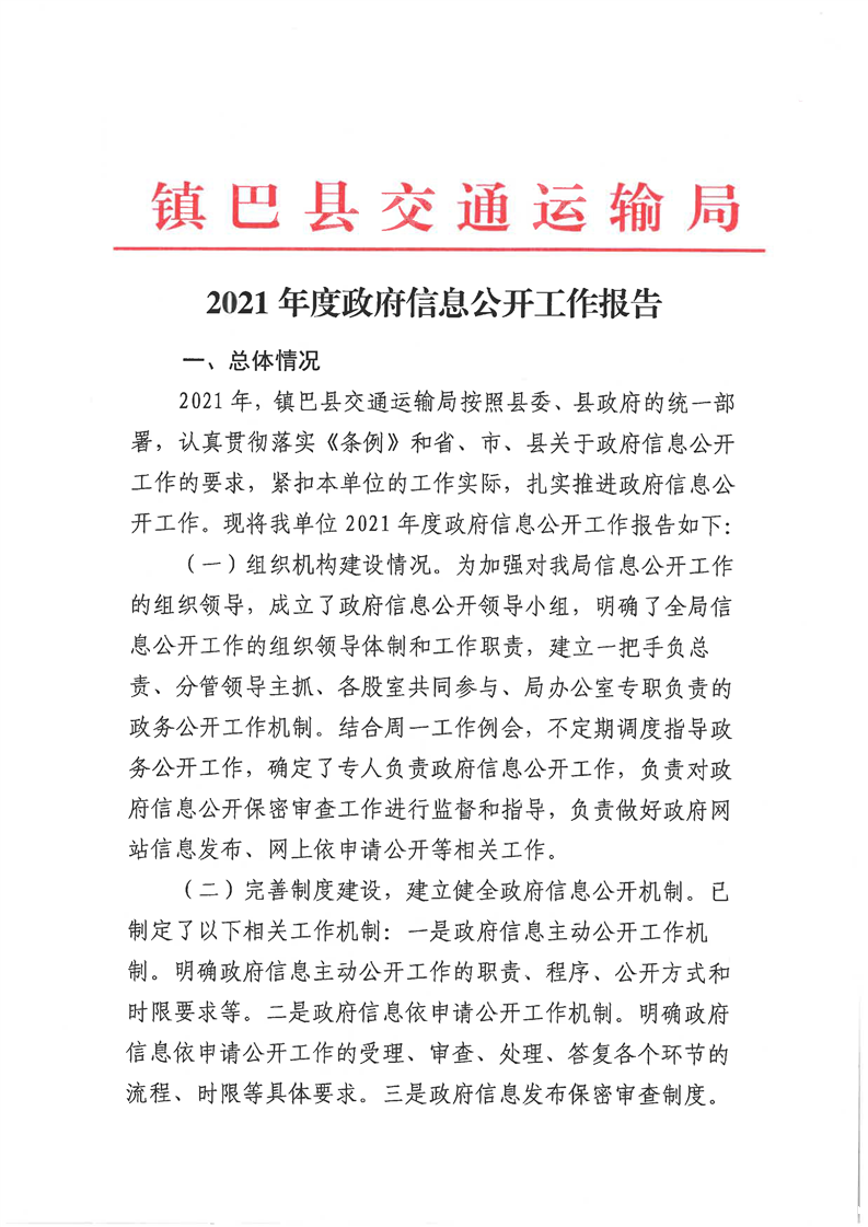 hth手机app下载交通运输局2021年度hth华体会体育全站app下载年度报告