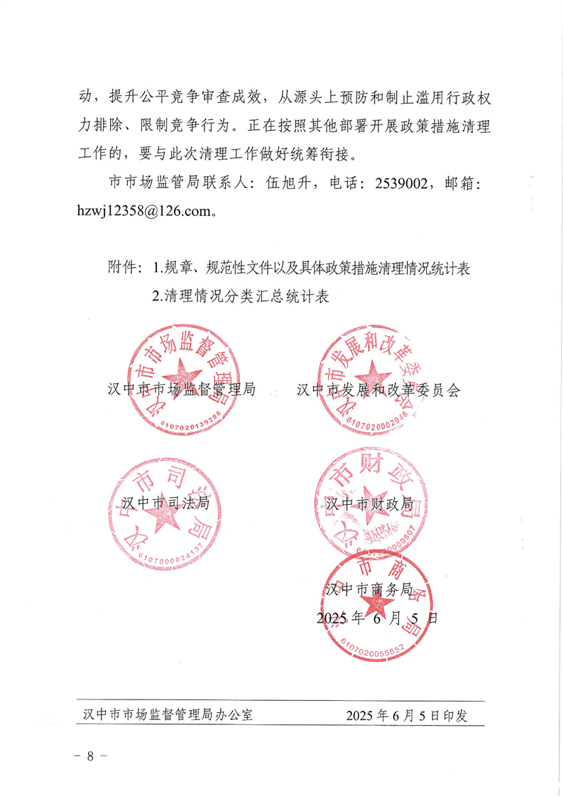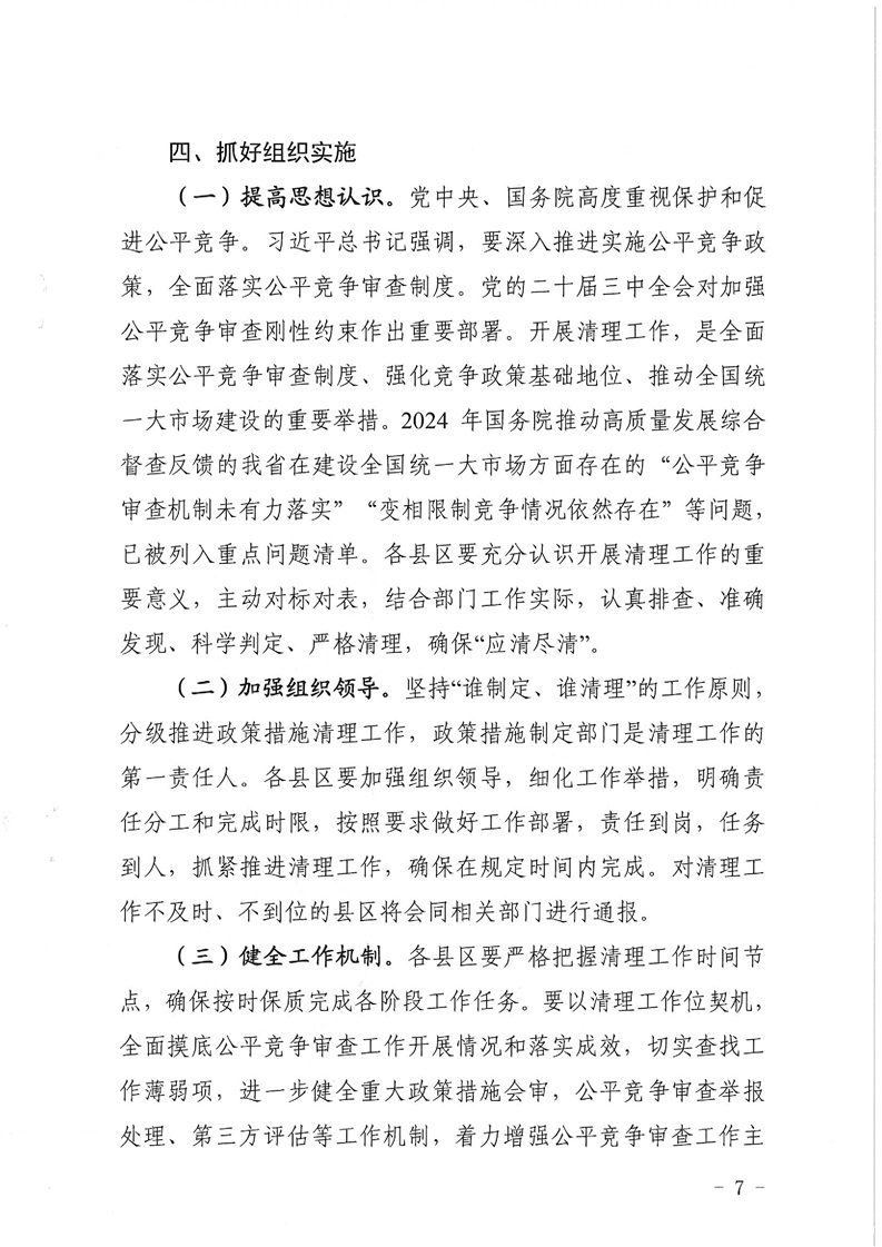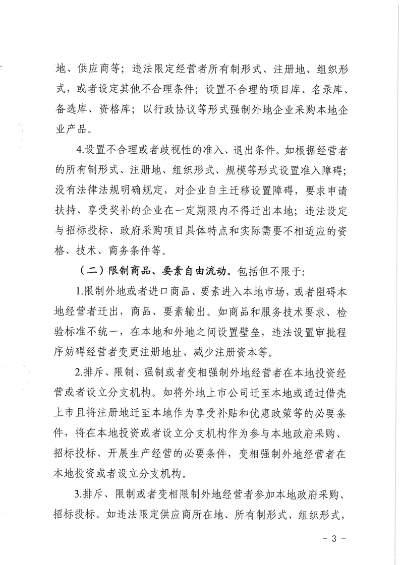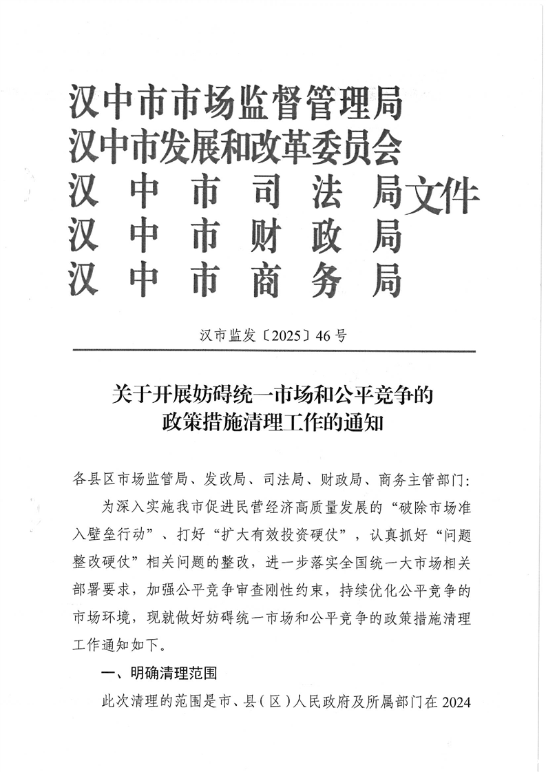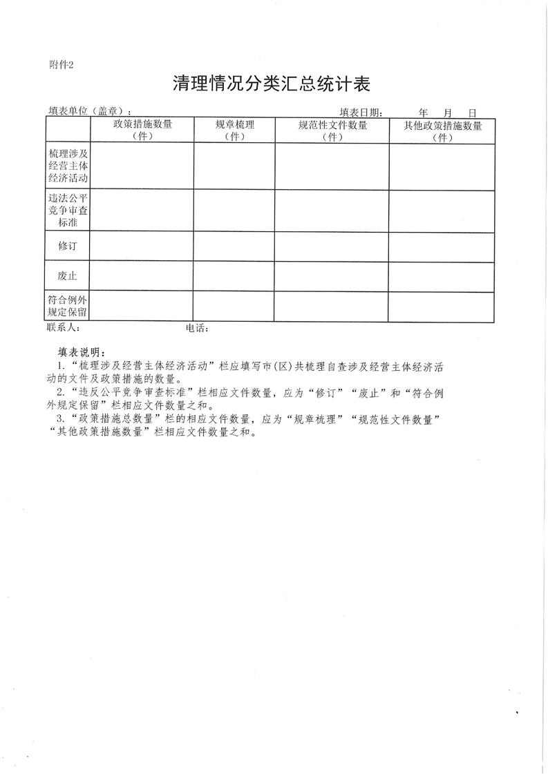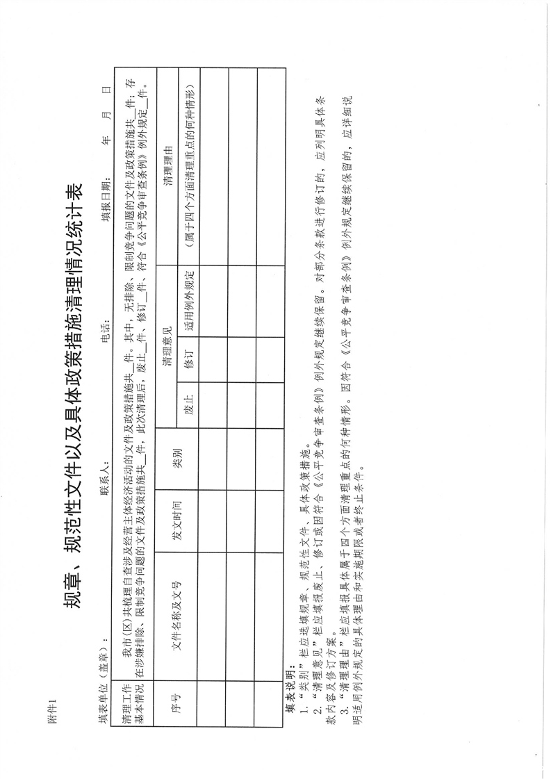 关于开展妨碍统一市场和公平竞争的政策措施清理工作的通知