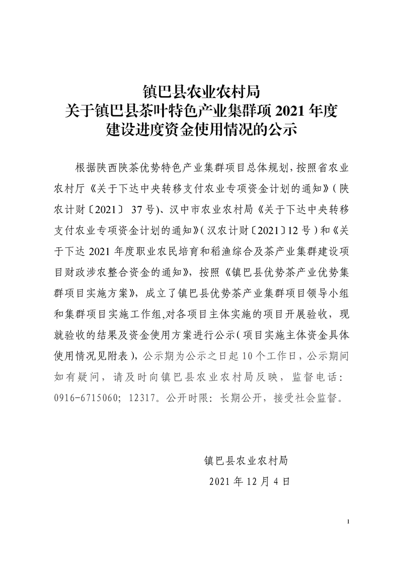 hth手机app下载农业农村局关于hth手机app下载茶叶特色产业集群项2021年度建设进度资金使用情况的公示