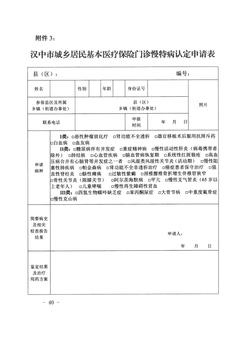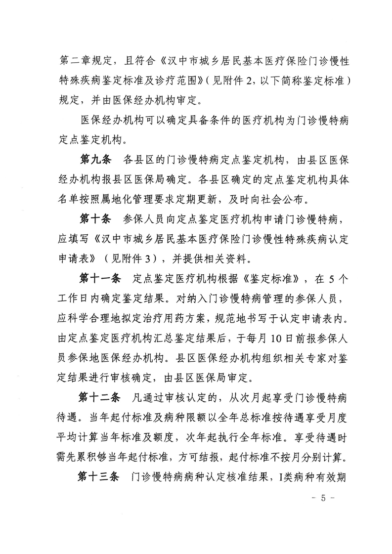 关于转发汉中市城乡居民基本医疗保险门诊慢性特殊疾病管理实施办法的通知
