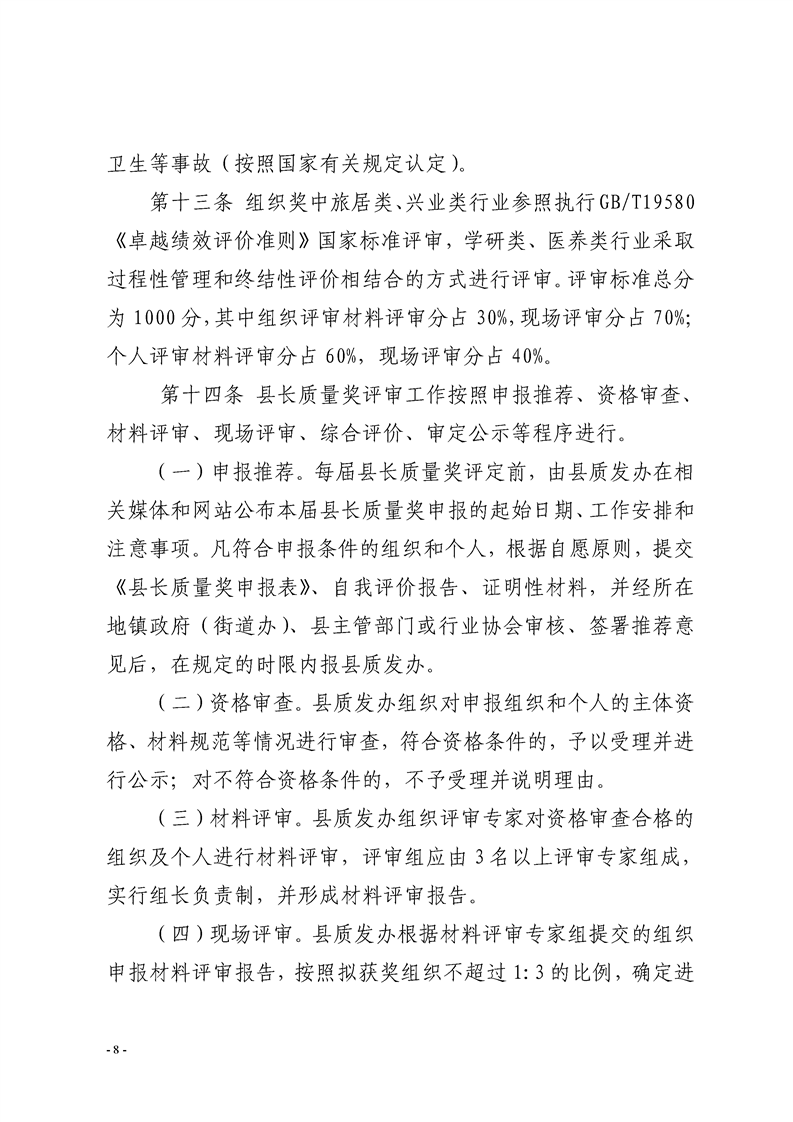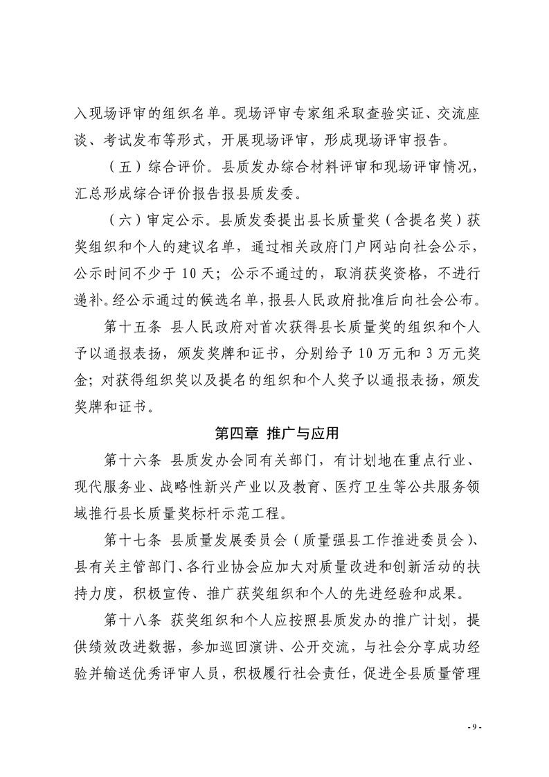 【有效】hth电子办公室关于印发hth手机app下载县长质量奖管理办法的通知