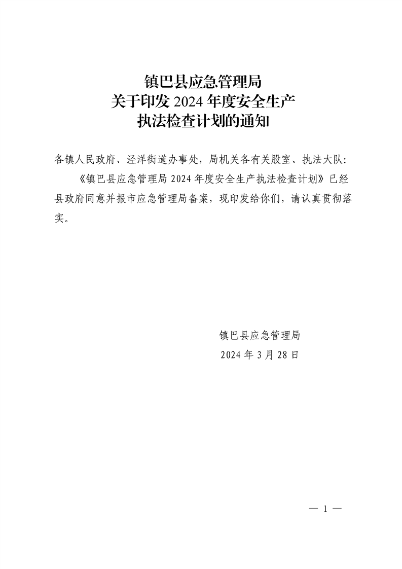 hth手机app下载应急管理局关于印发2024年度安全生产执法检查计划的通知