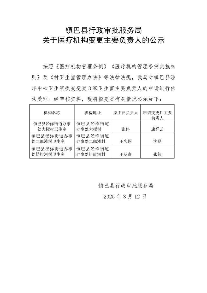 hth手机app下载行政审批服务局关于医疗机构变更主要负责人的公示