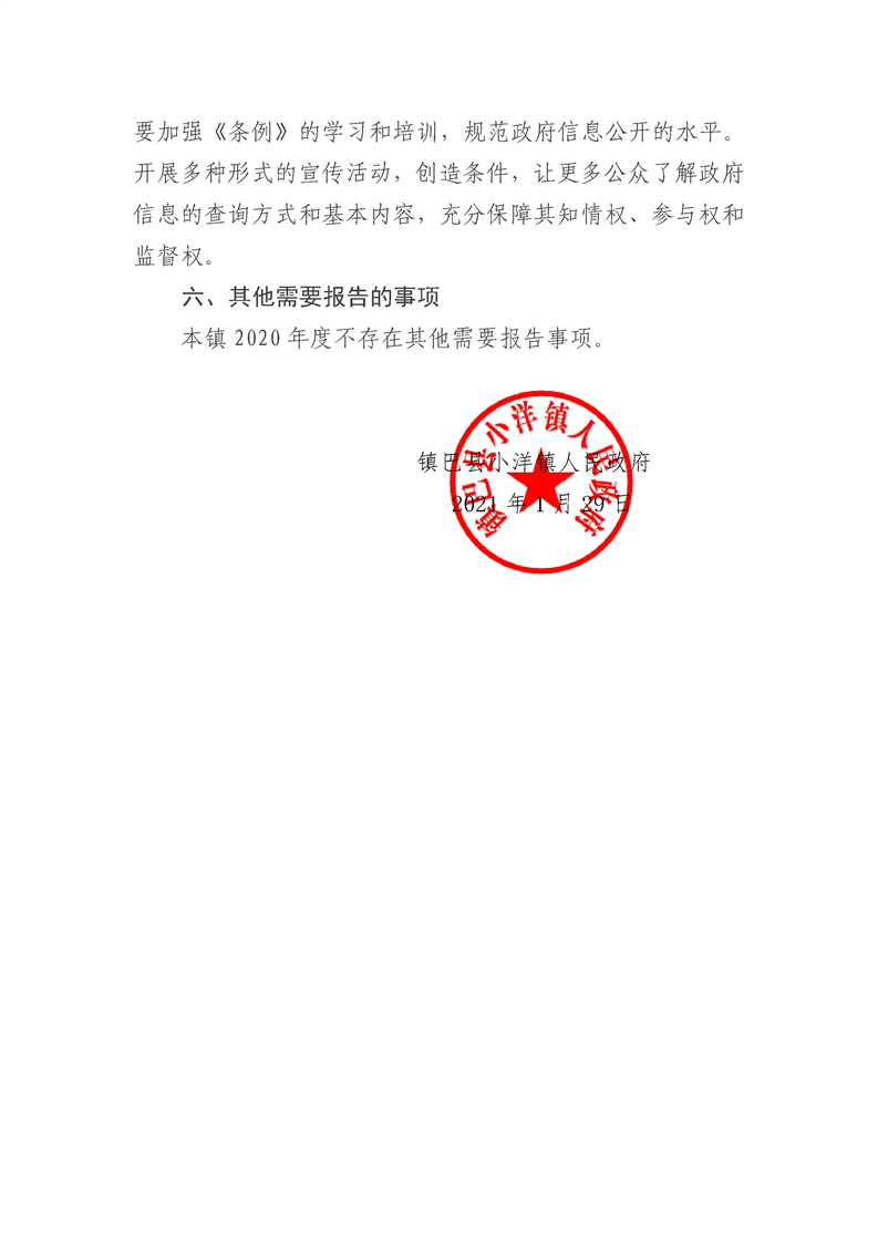 小洋镇2020年度信息公开工作年度报告