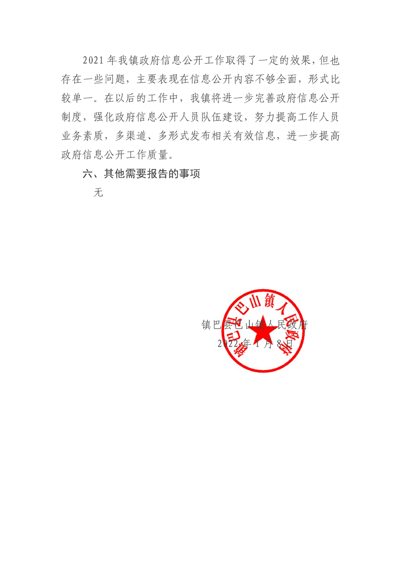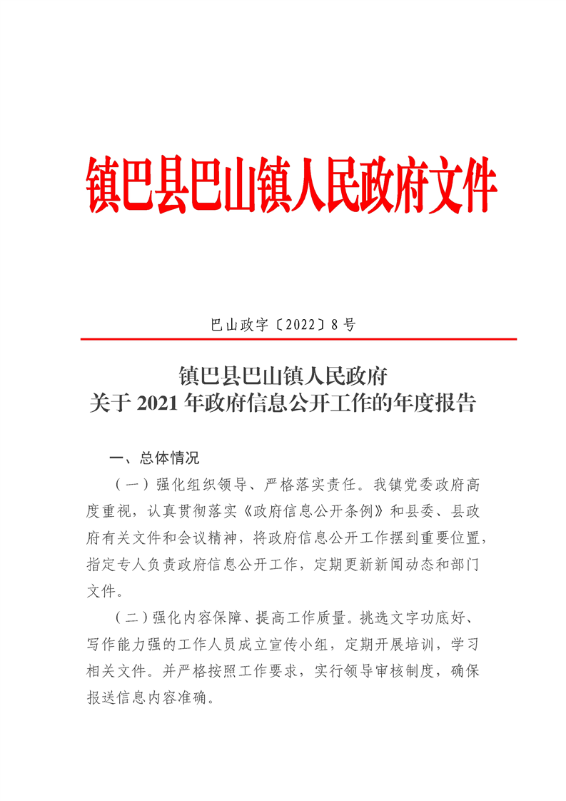 hth手机app下载巴山镇人民政府2021年度hth华体会体育全站app下载年度报告