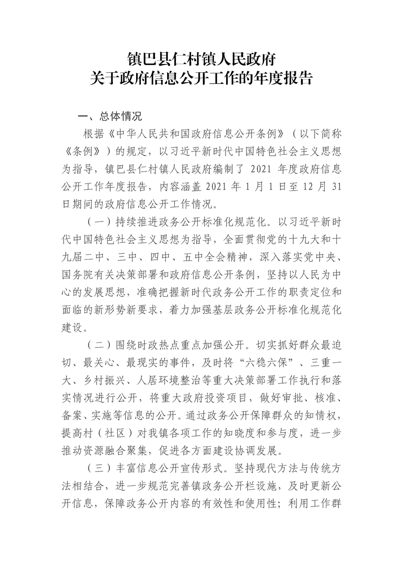 hth手机app下载仁村镇人民政府2021年度hth华体会体育全站app下载年度报告
