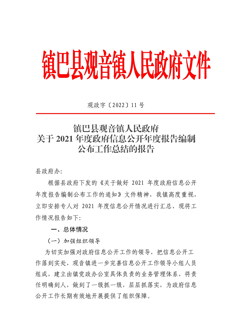 hth手机app下载观音镇人民政府2021年度hth华体会体育全站app下载年度报告