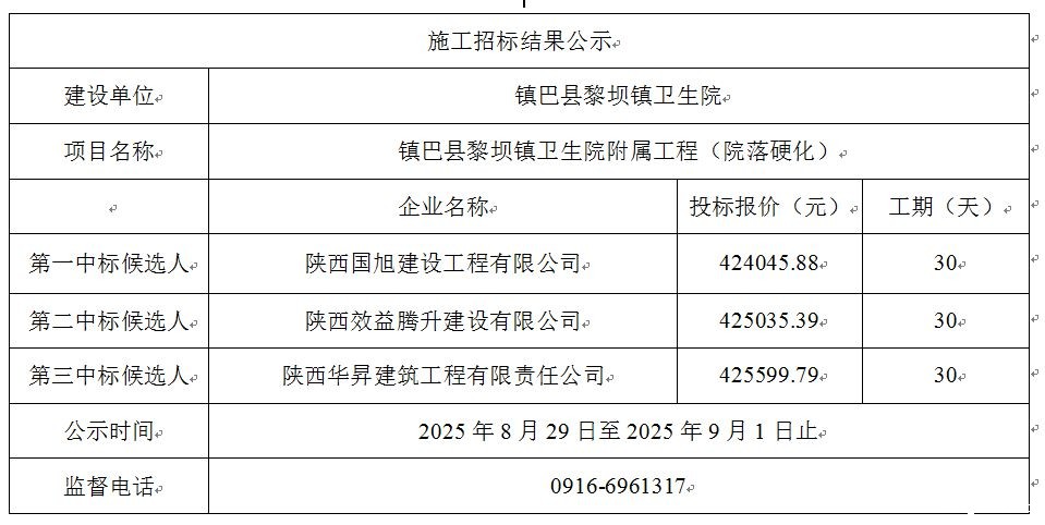 hth手机app下载黎坝镇卫生院附属工程(院落硬化)施工评标结果公示
