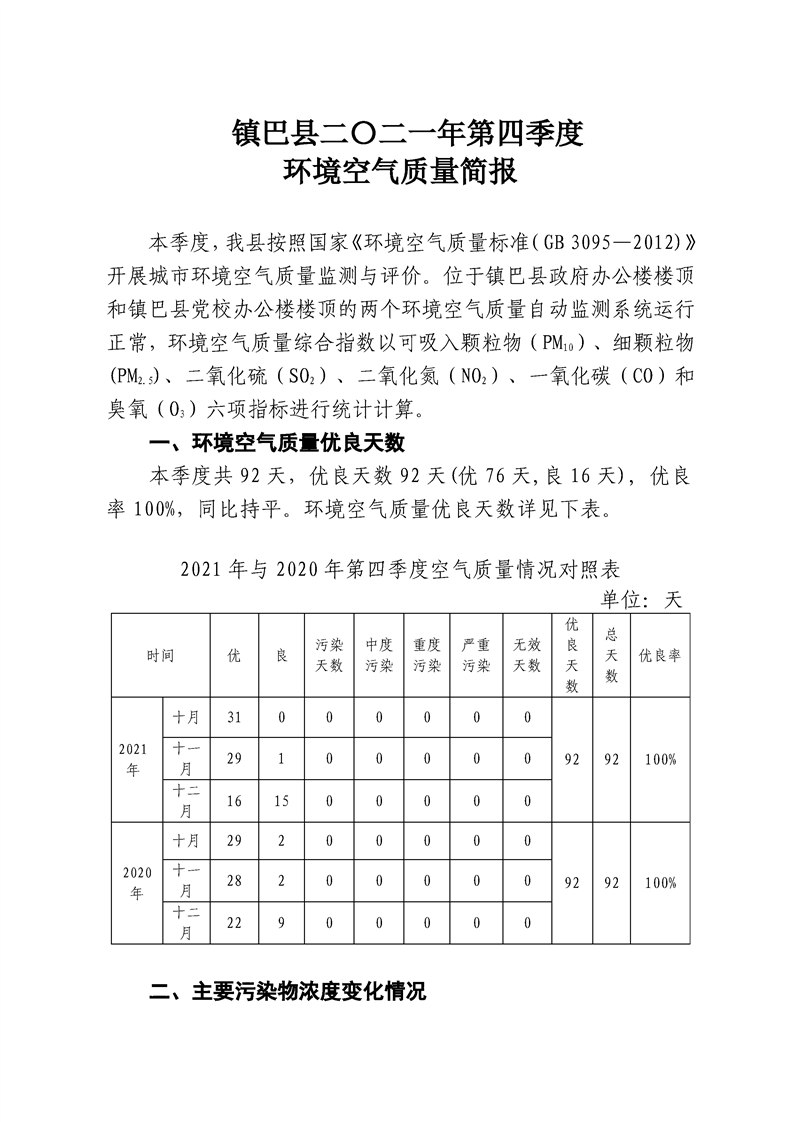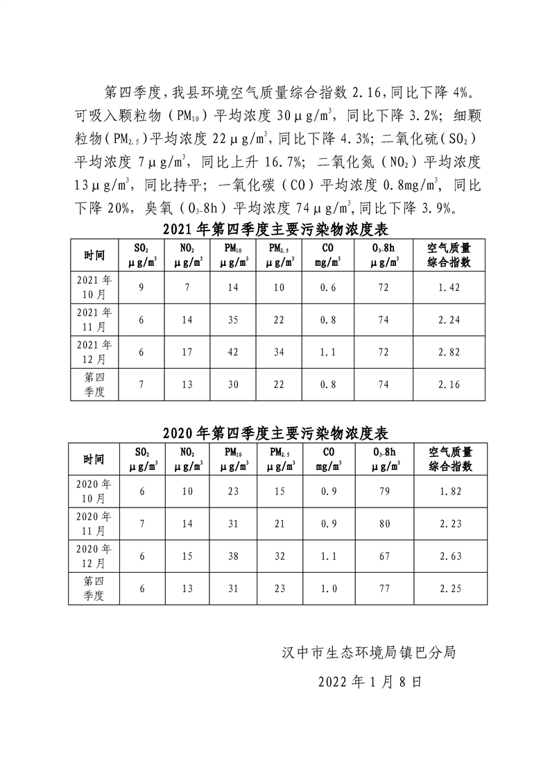 hth手机app下载二〇二一年第四季度环境空气质量简报