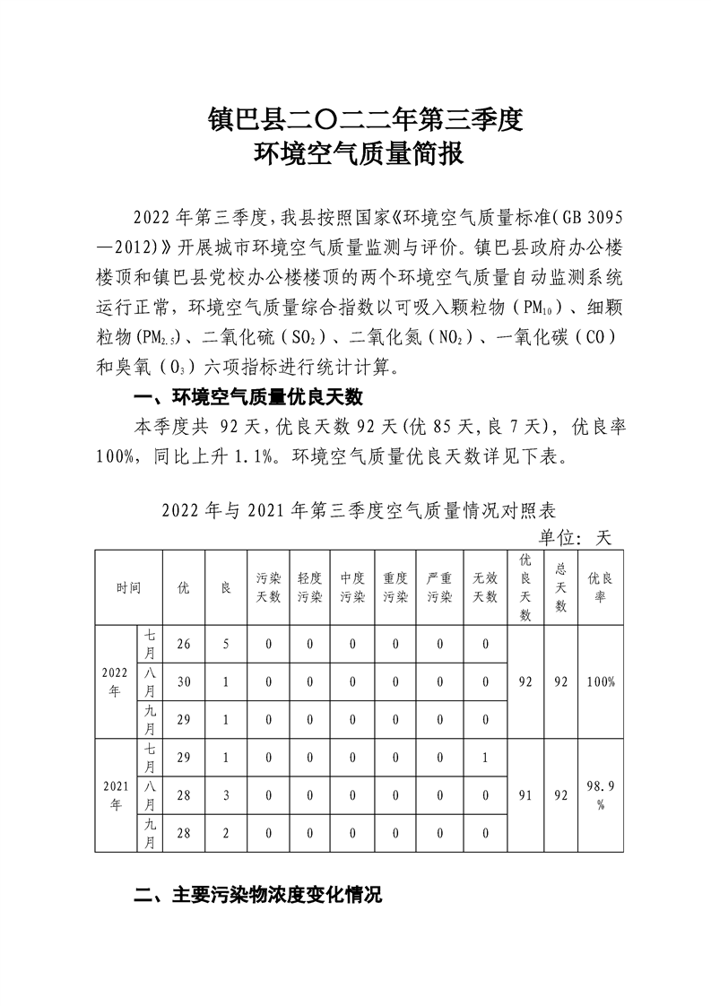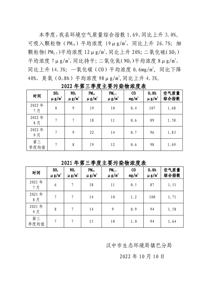 hth手机app下载二〇二二年第三季度环境空气质量简报