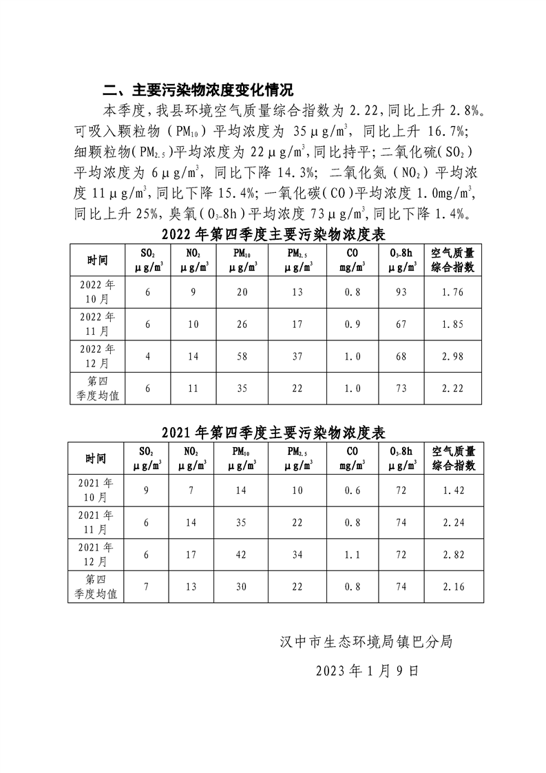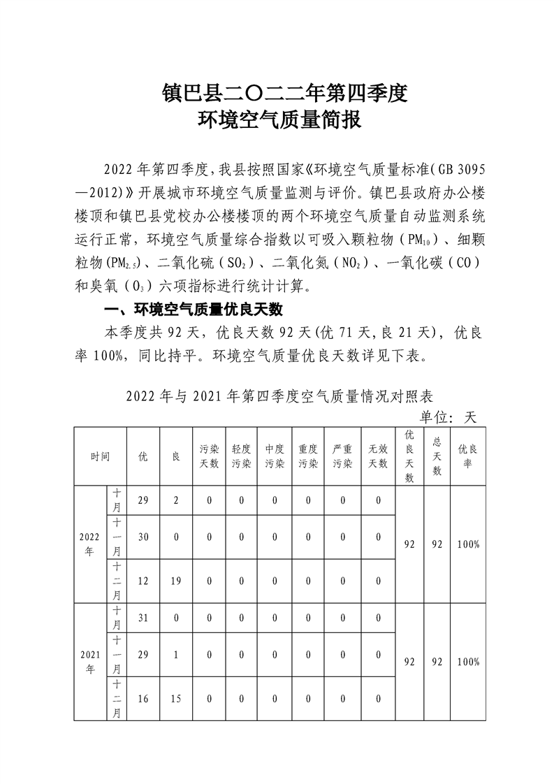 hth手机app下载二〇二二年第四季度环境空气质量简报