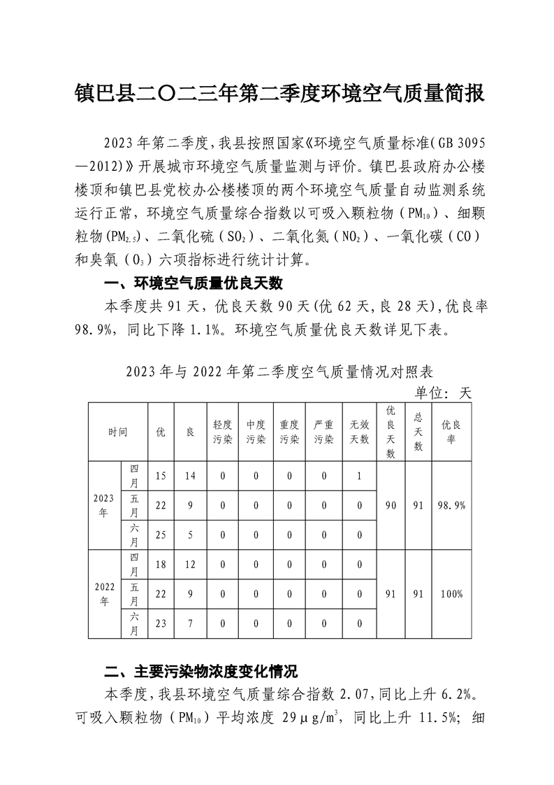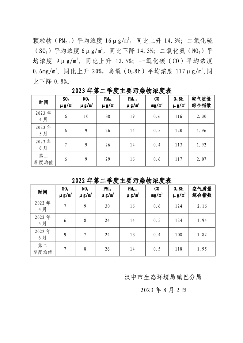hth手机app下载二〇二三年第二季度环境空气质量简报