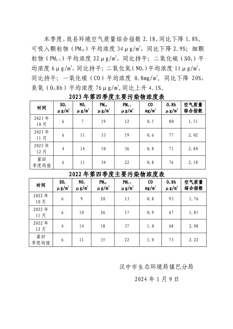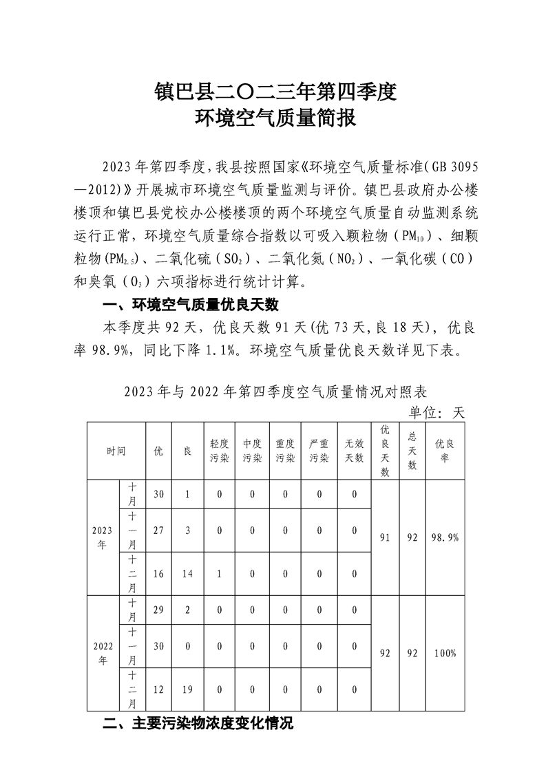 hth手机app下载二〇二三年第四季度环境空气质量简报