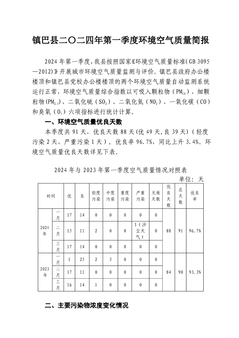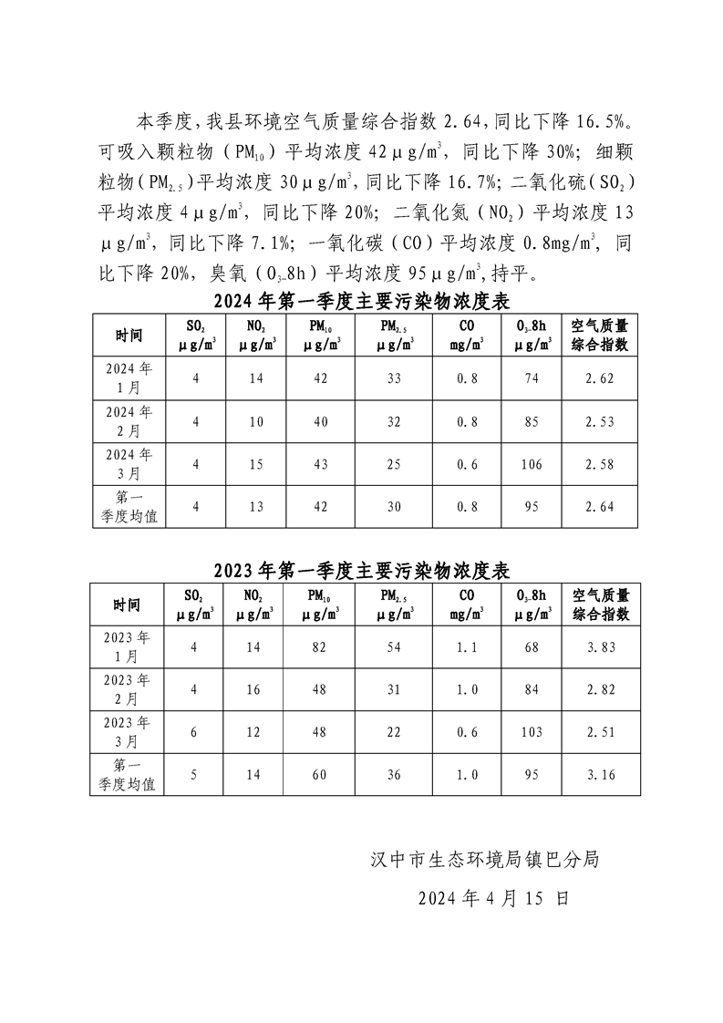 hth手机app下载二〇二四年第一季度环境空气质量简报