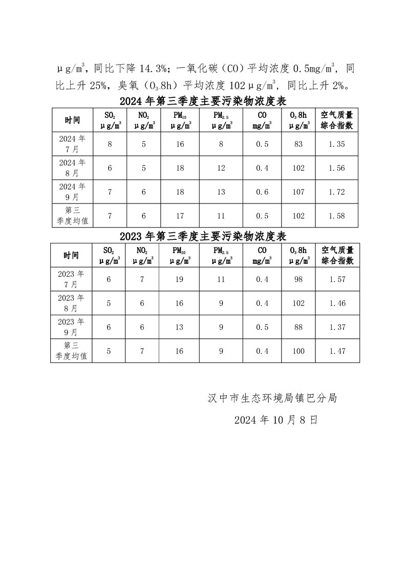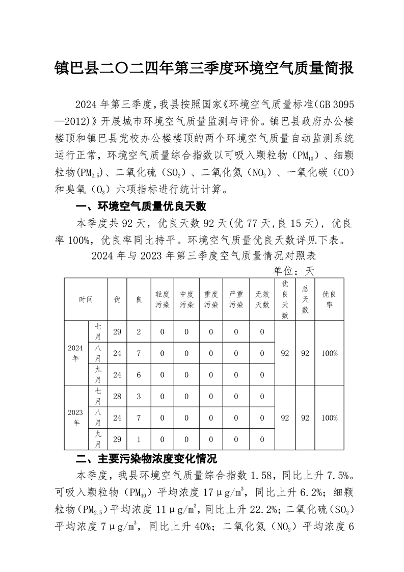 hth手机app下载二〇二四年第三季度环境空气质量简报