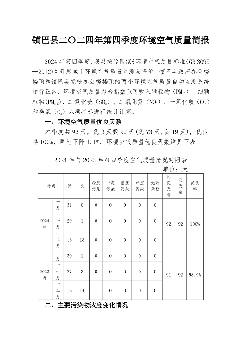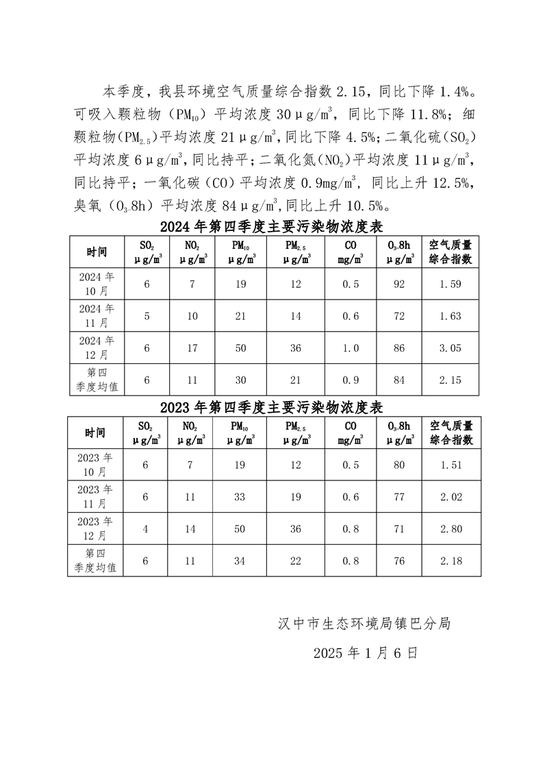 hth手机app下载二〇二四年第四季度环境空气质量简报