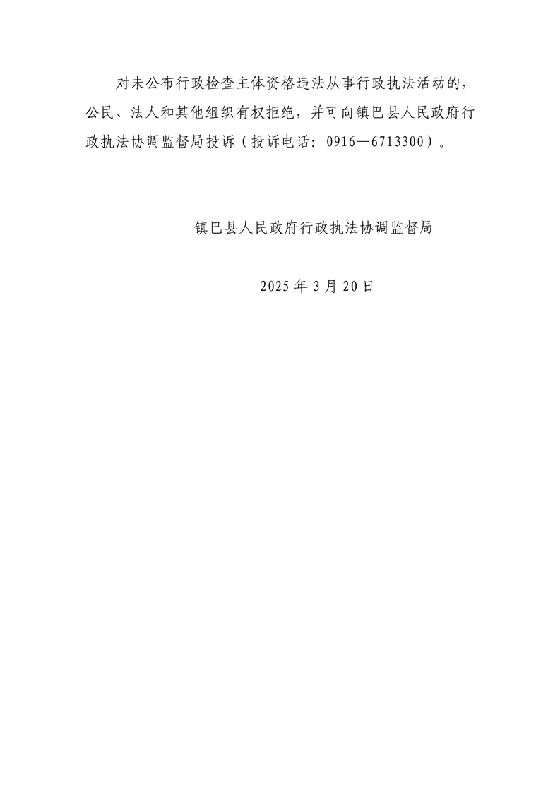 关于公布涉企行政检查主体清单的公告