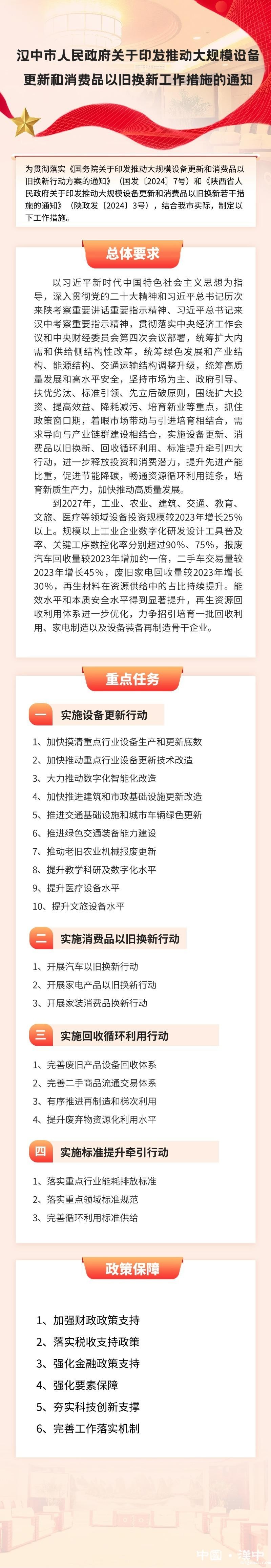 一图看懂|汉中市人民政府关于印发推动大规模设备更新和消费品以旧换新工作措施的通知