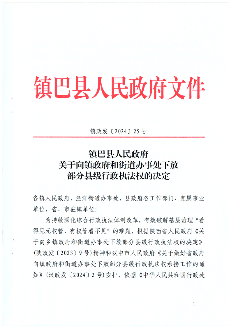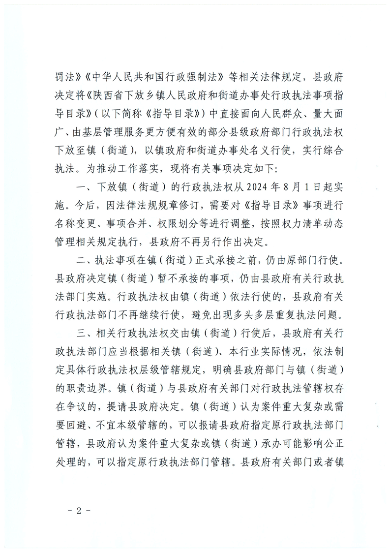 hth电子关于向镇政府和街道办事处下放部分县级行政执法权的决定