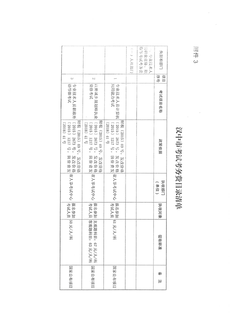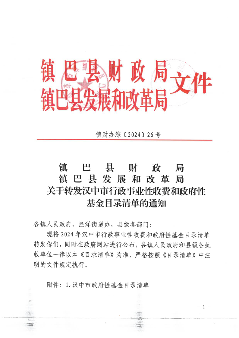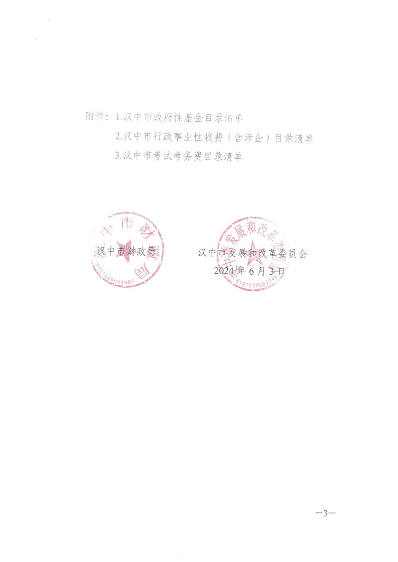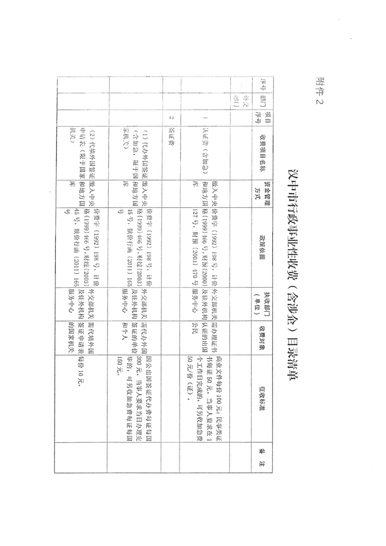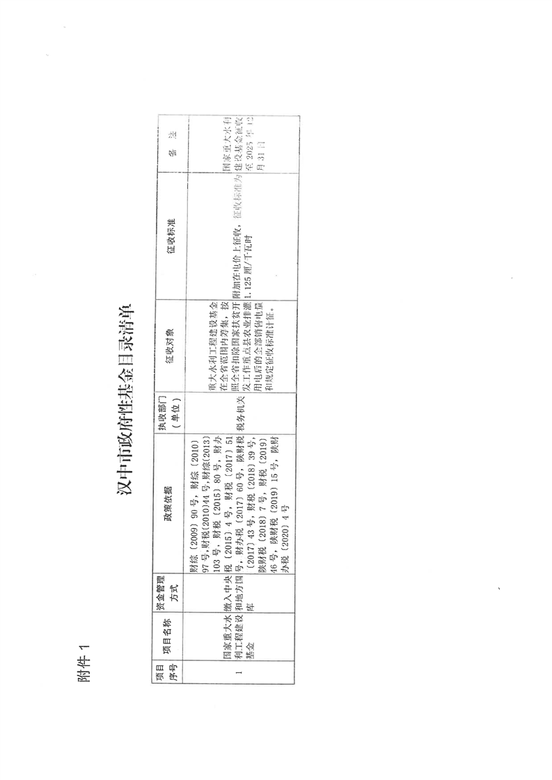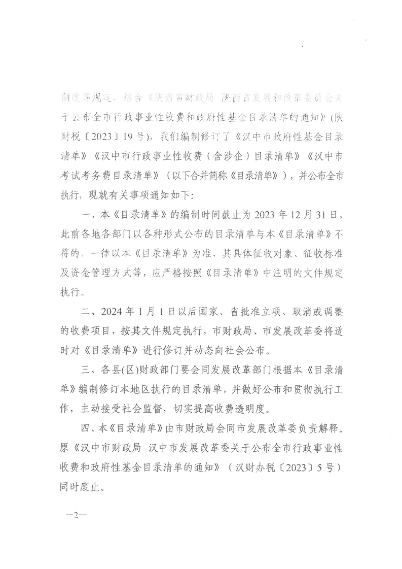 关于转发汉中市行政事业性收费和政府性基金目录清单的通知