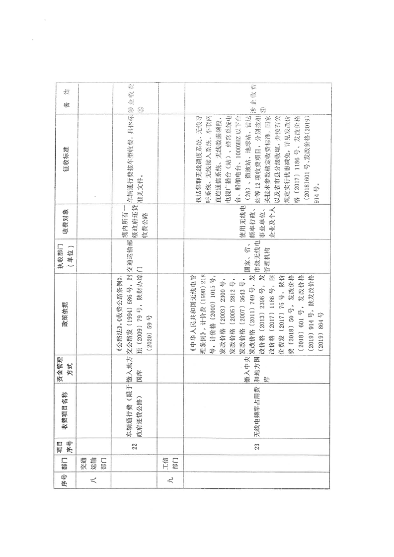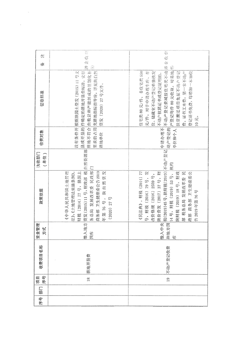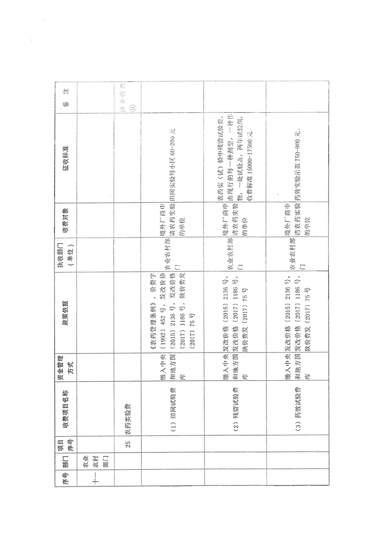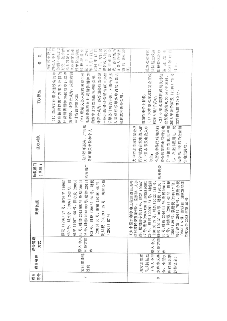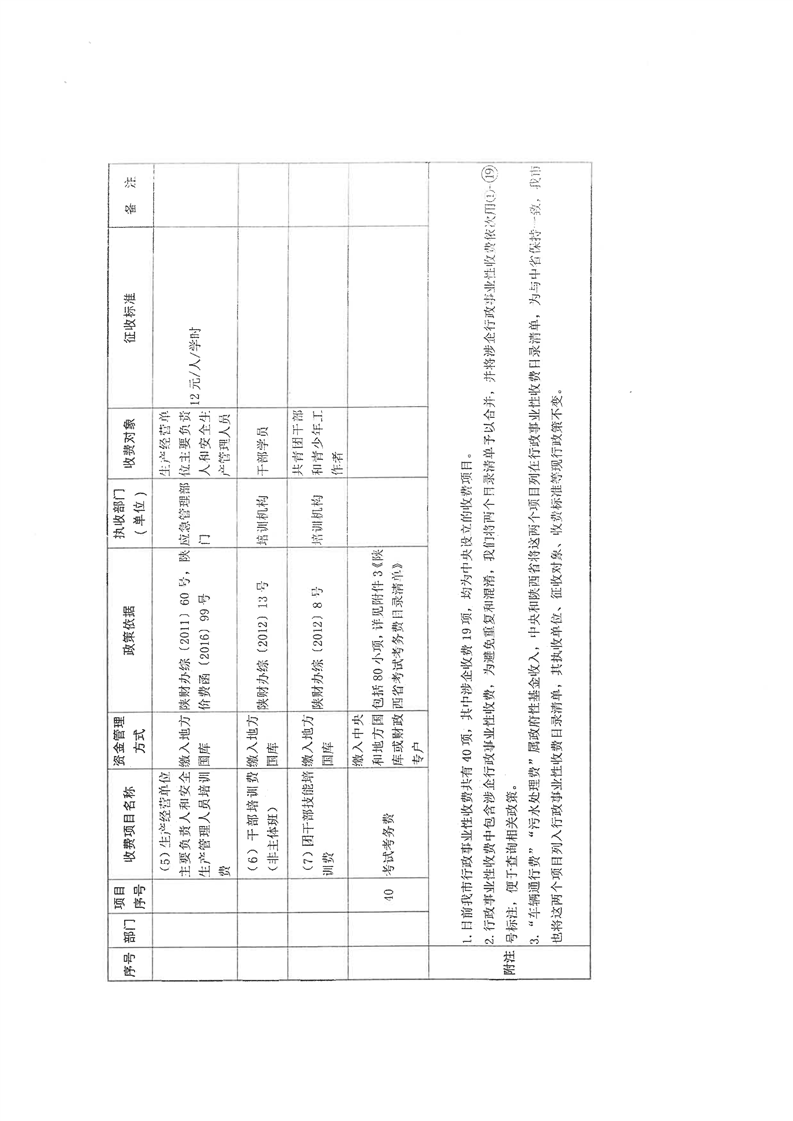 关于转发汉中市行政事业性收费和政府性基金目录清单的通知