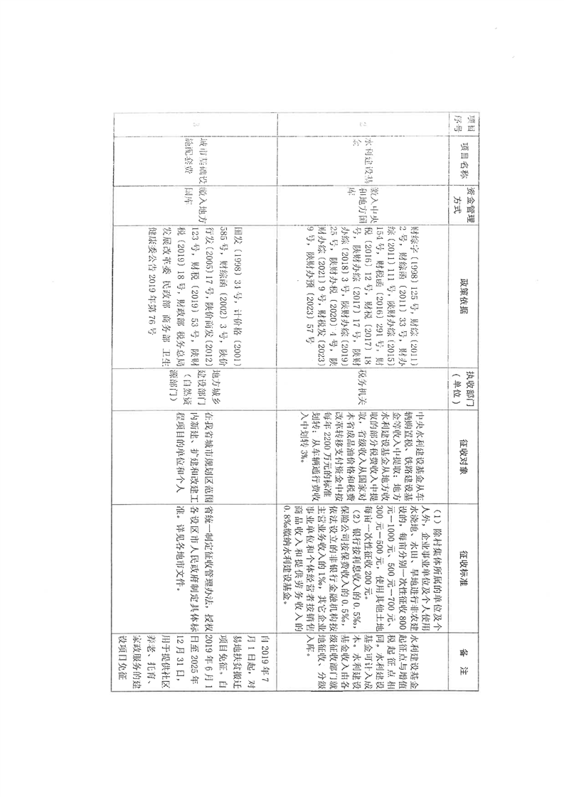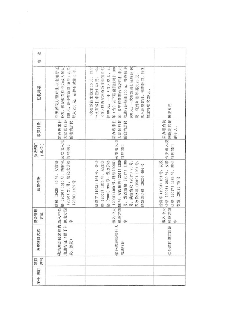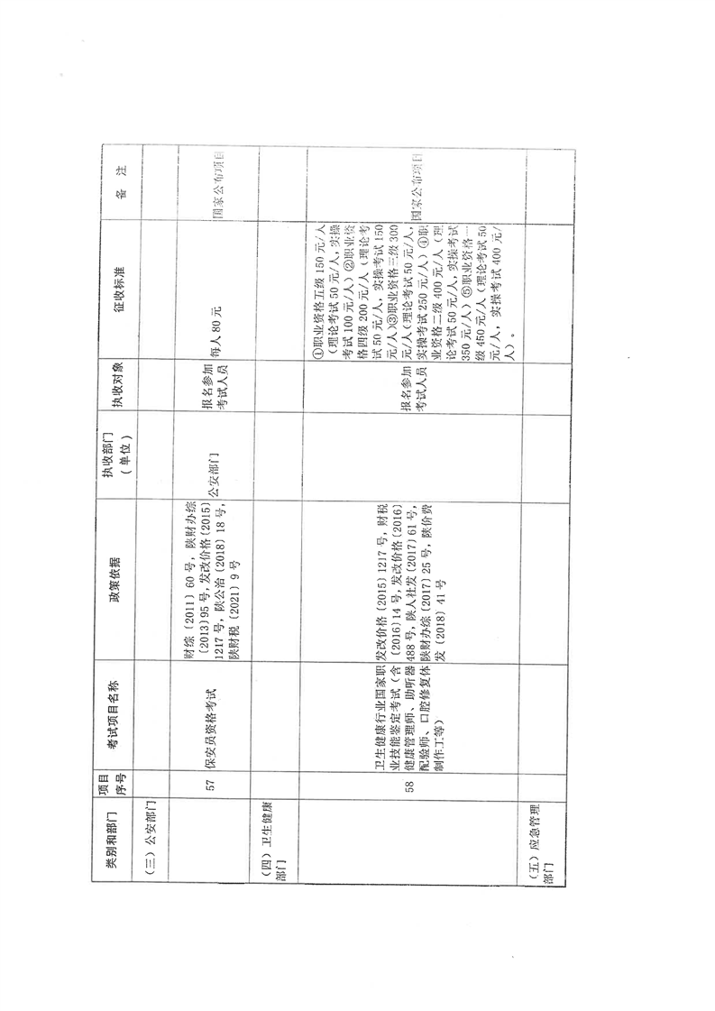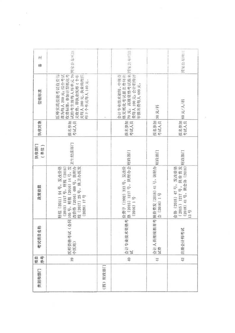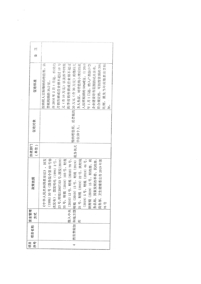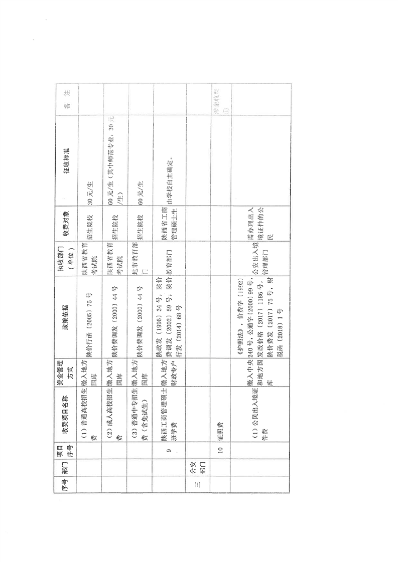 关于转发汉中市行政事业性收费和政府性基金目录清单的通知
