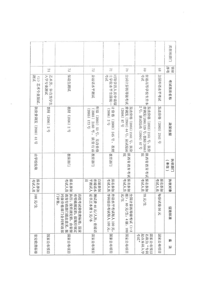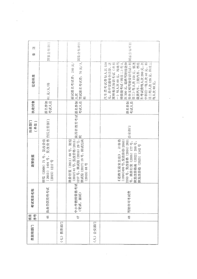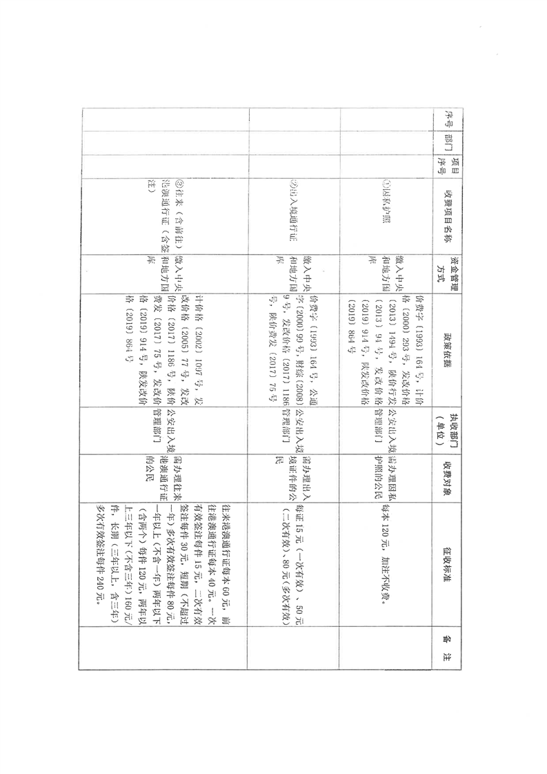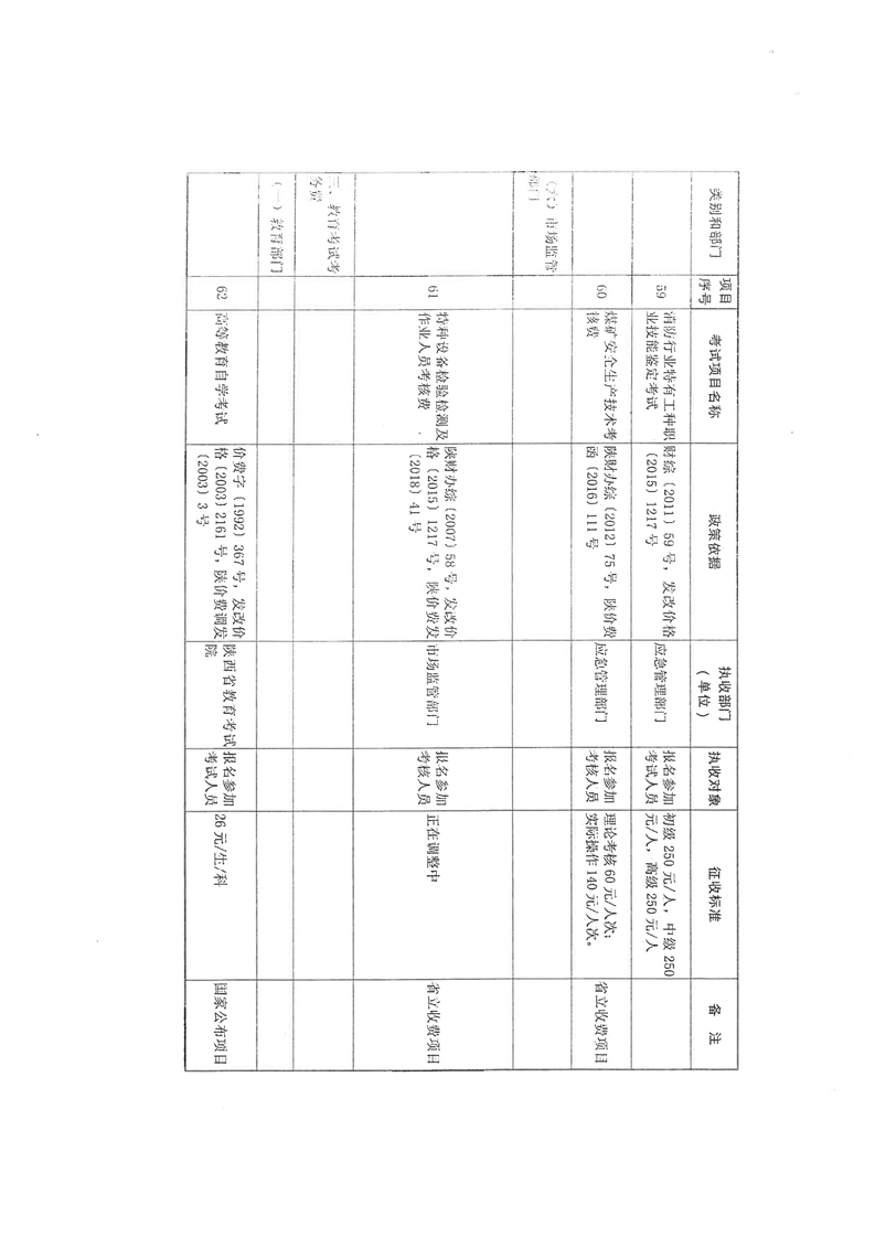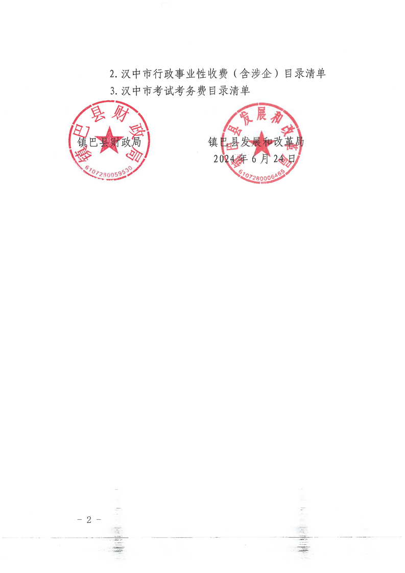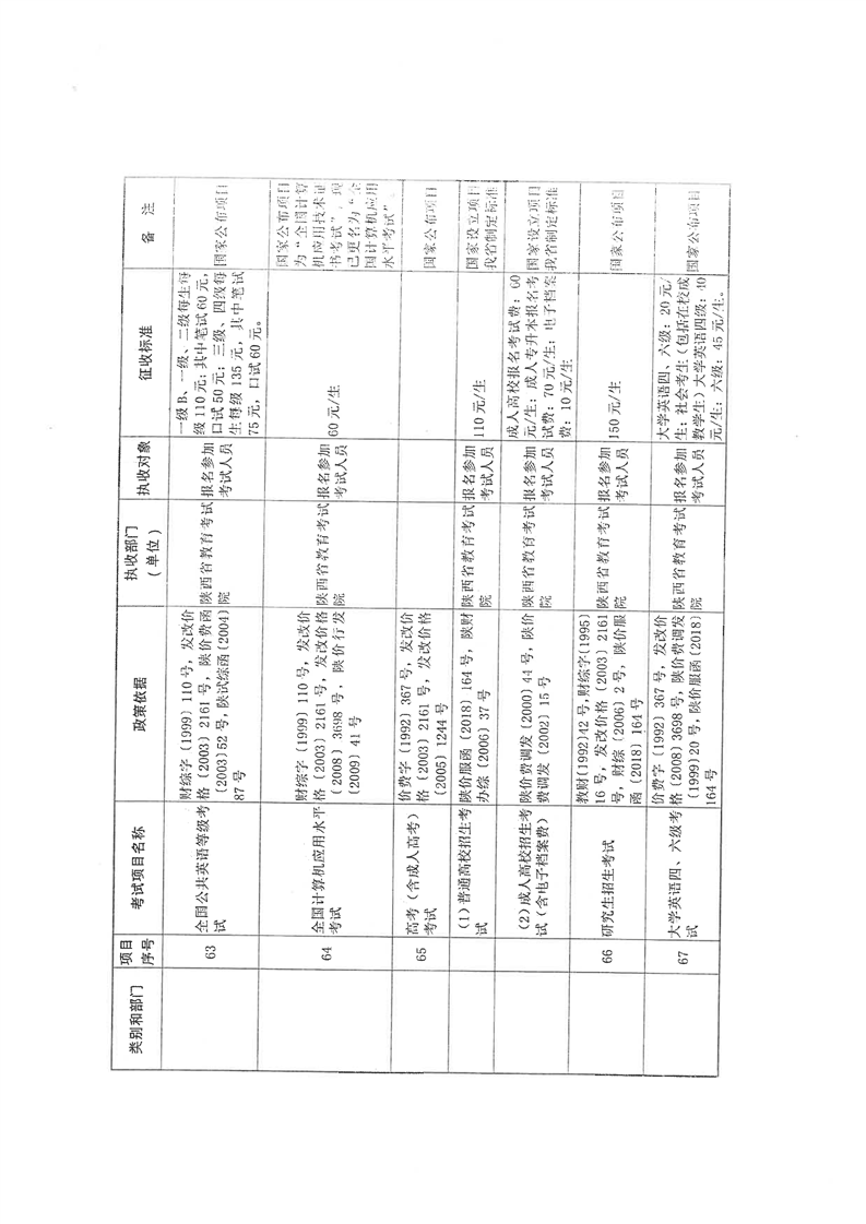 关于转发汉中市行政事业性收费和政府性基金目录清单的通知