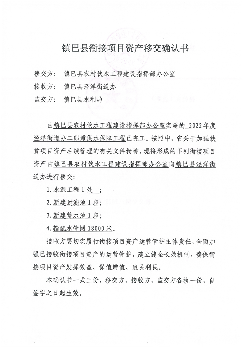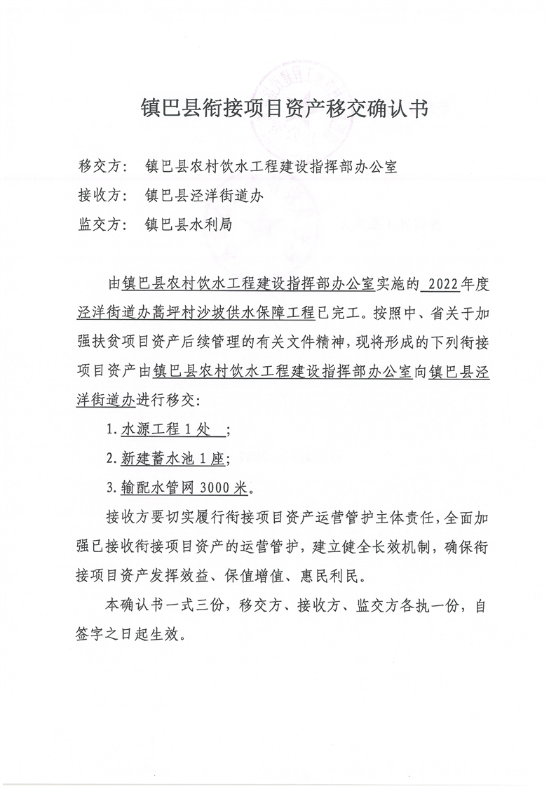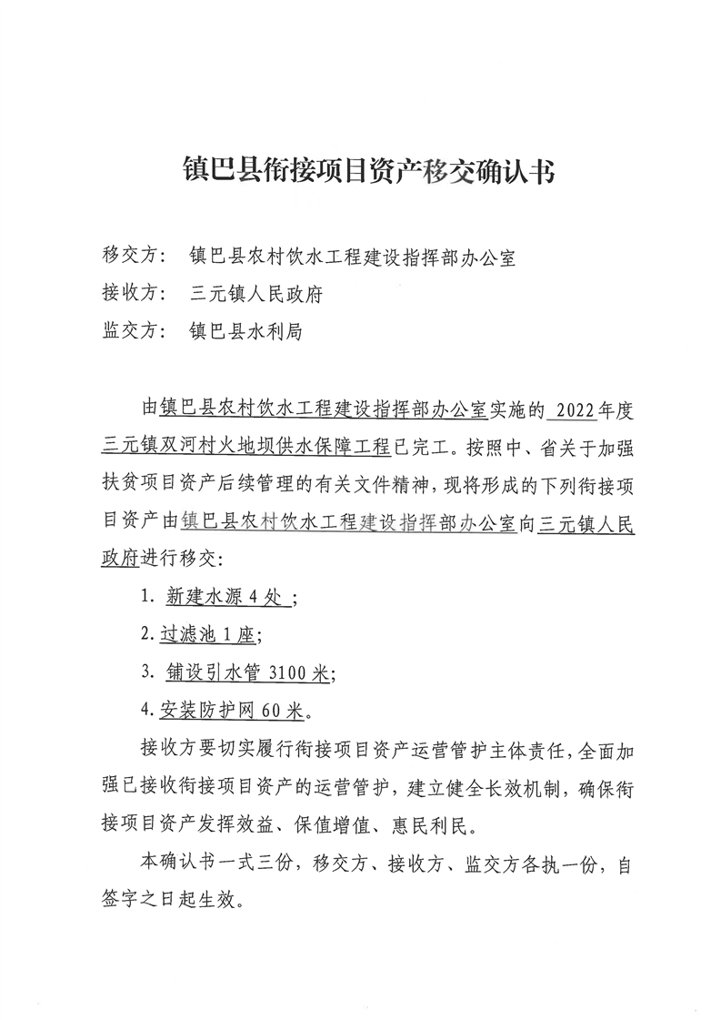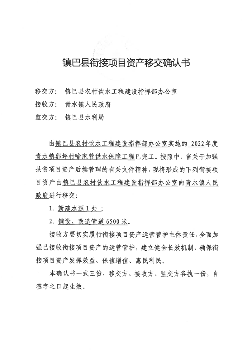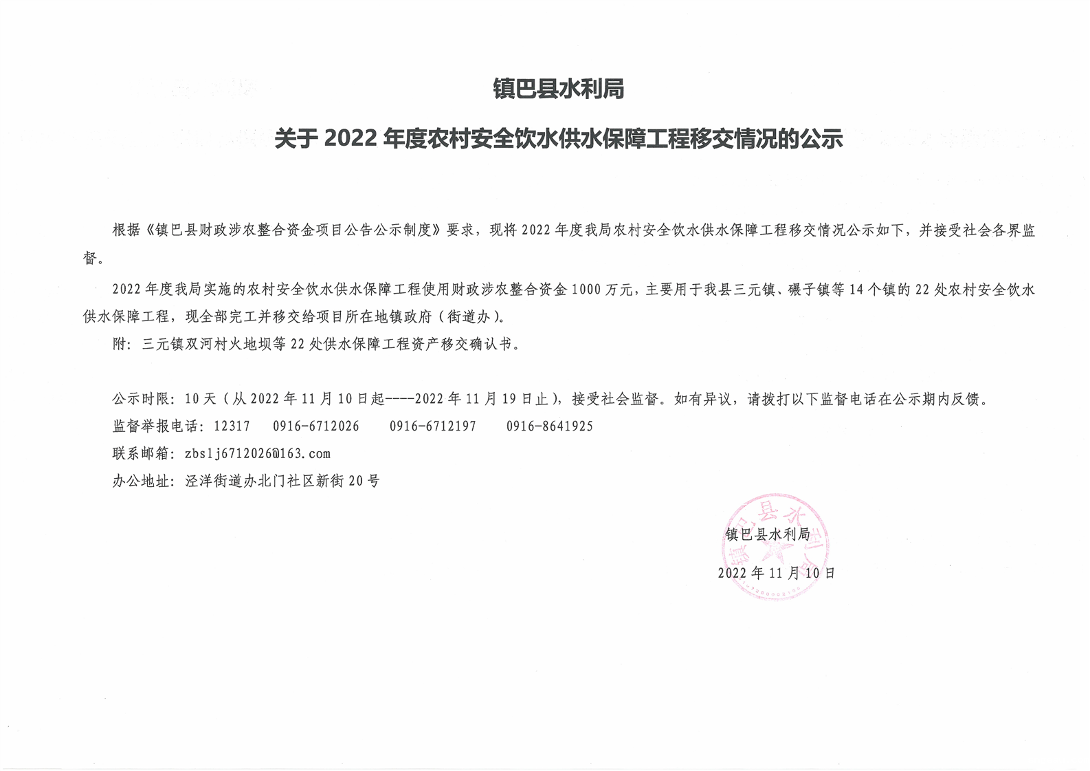 hth手机app下载水利局关于2022年度农村安全饮水供水保障工程移交情况的公示