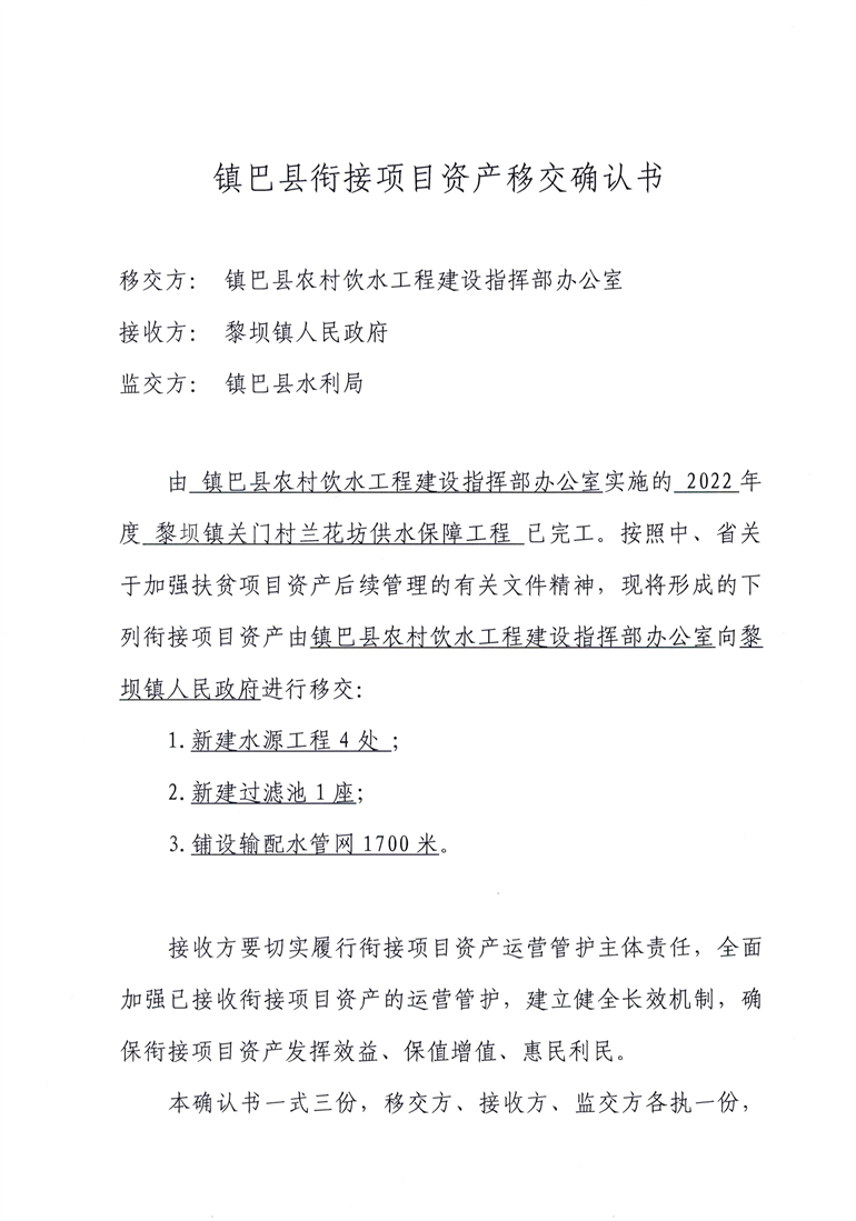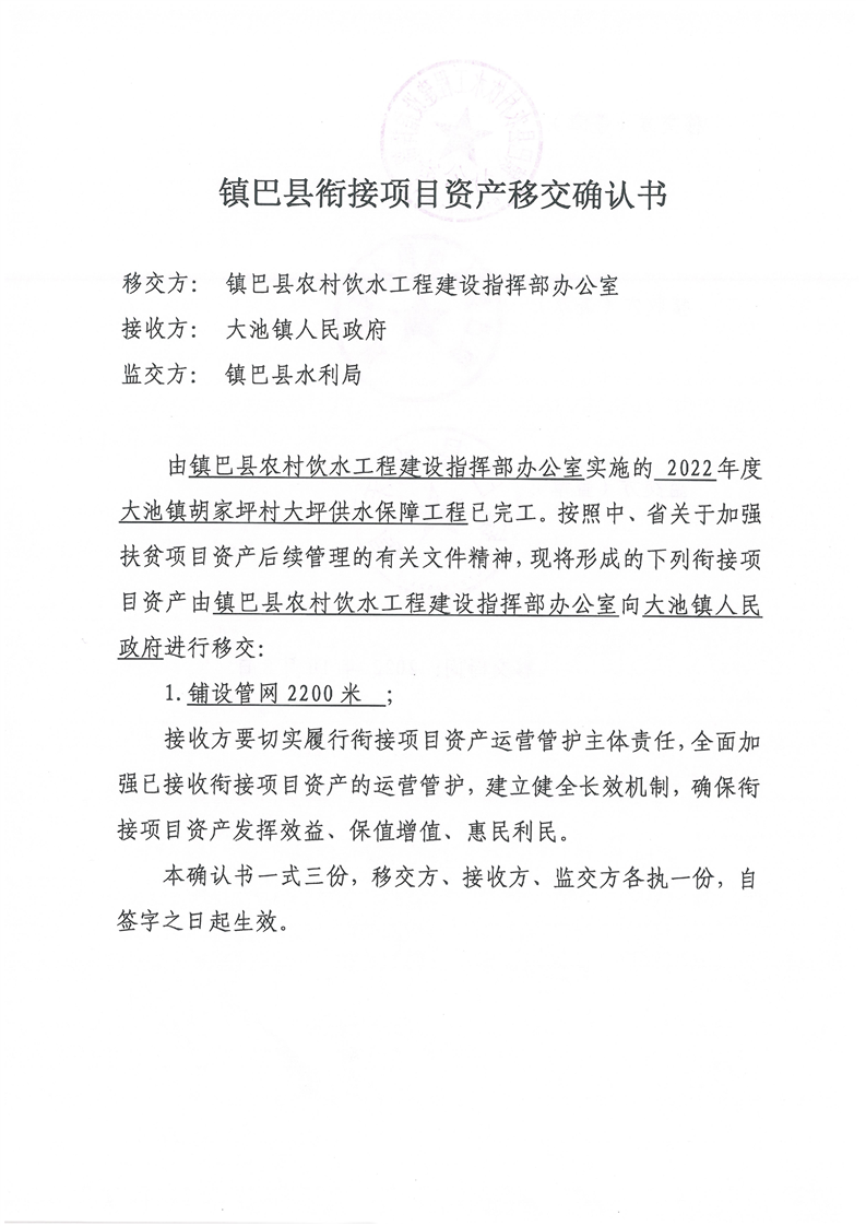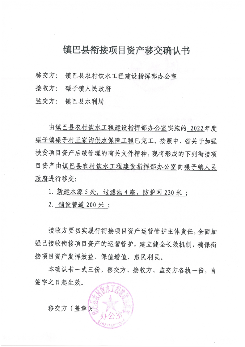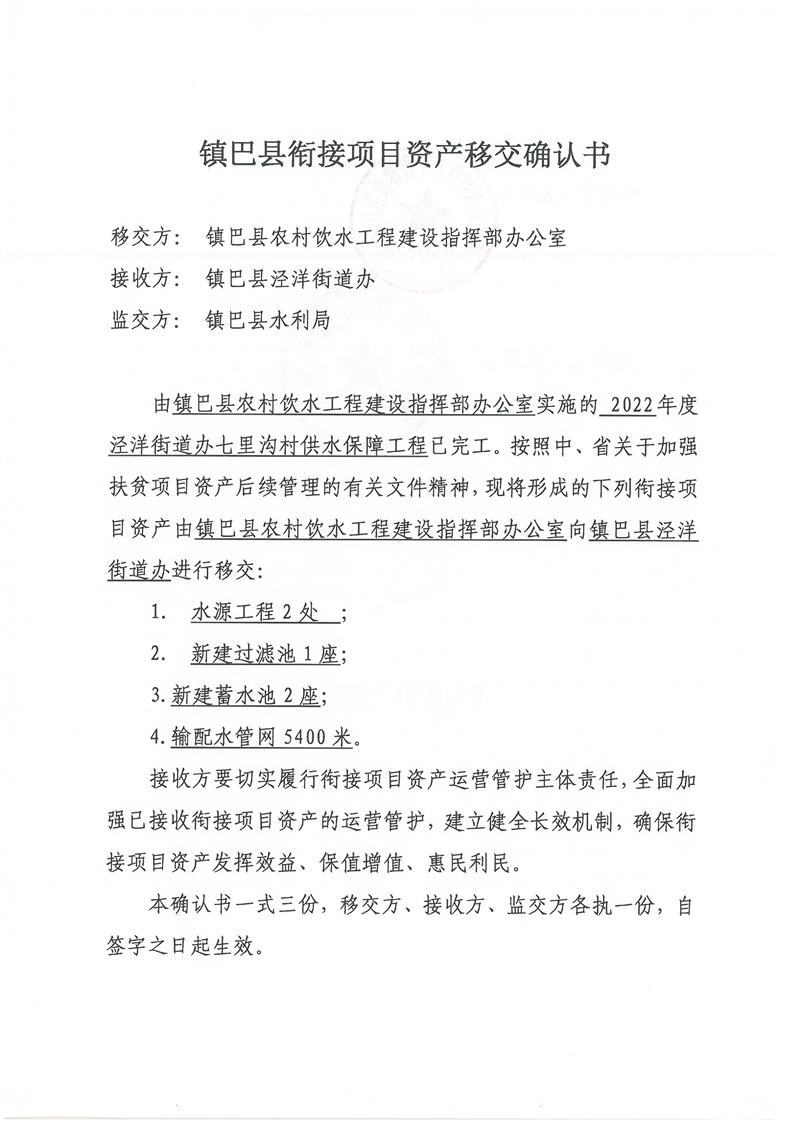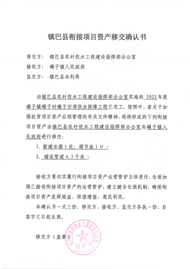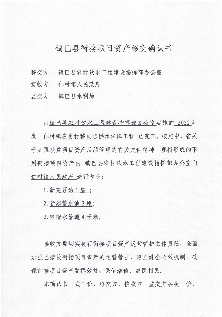 hth手机app下载水利局关于2022年度农村安全饮水供水保障工程移交情况的公示