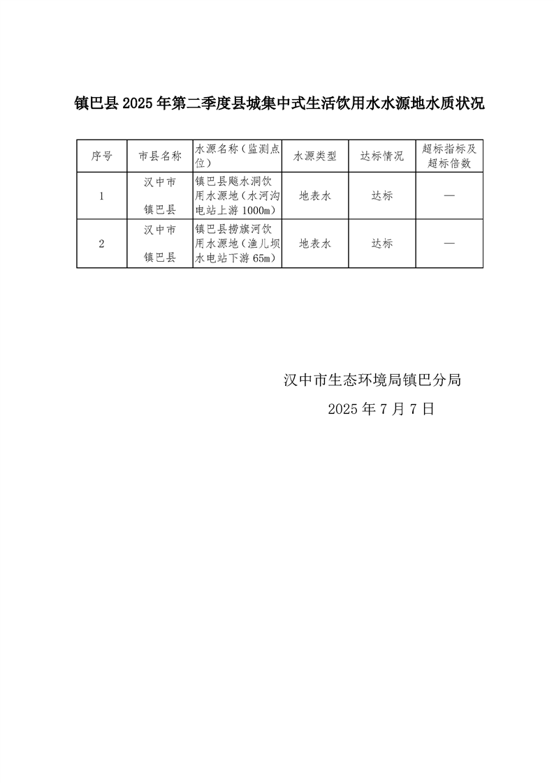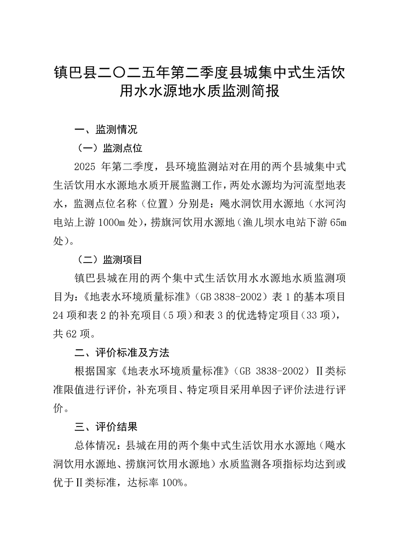 hth手机app下载二〇二五年第二季度县城集中式生活饮用水水源地水质监测简报