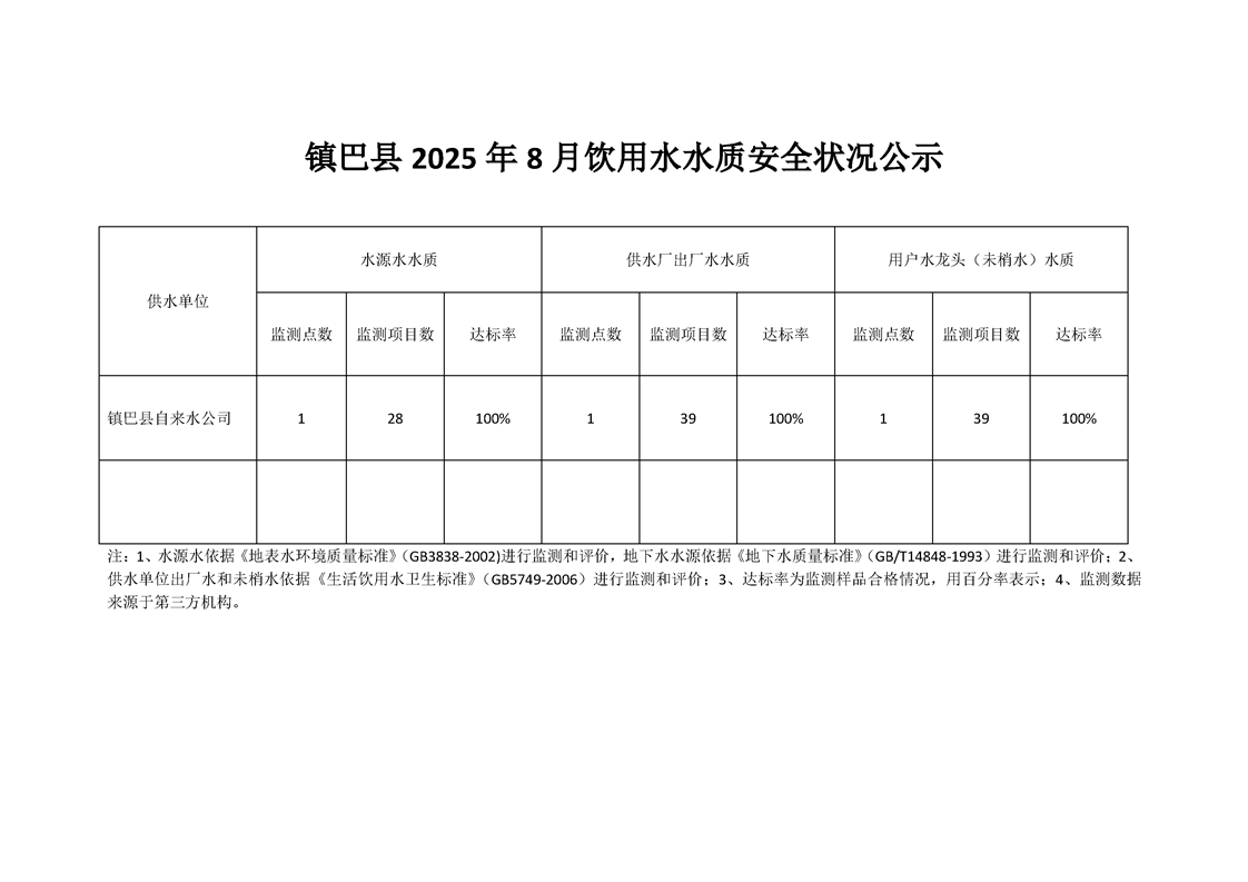 hth手机app下载2025年8月饮用水水质安全状况公示