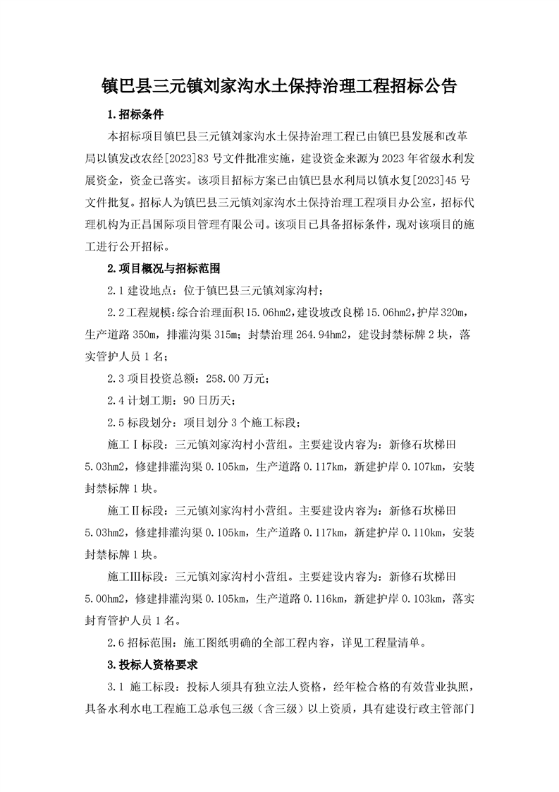 hth手机app下载三元镇刘家沟水土保持治理工程招标公告